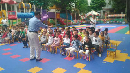 为了让孩子们从小接受乡土文化教育,10月20日下午,龙岭社区关工委成员赖光赵老师到新启航幼儿园开展教小朋友学讲永安方言活动,参加此次活动的小朋友70余人。赖老师教小朋友学的方言就是1路公交车上乘务员用永安方言播报站点和平常的文明礼貌用语等内容。在教学过程中赖老师教的认真准确,小朋友们学的有板有眼。看到小朋友全神贯注的听和学,赖老师很欣慰,仿佛自己又回到十多年前在教室给学生上课的情境。