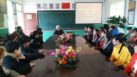 市关工委报告团老同志为加福小学学生