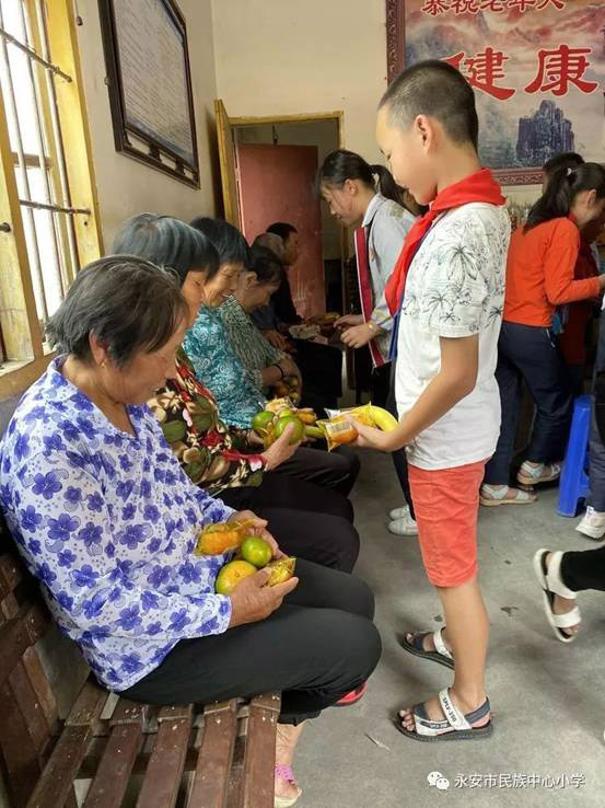 重阳节期间,青水乡民族中心小学携手乡关工委开展“尊老敬老•厚德仁爱”主题活动。节日期间,组织师生到乡敬老院开展慰问,帮助老人们打扫卫生,切实关心他们的生活,倾听他们的心声,送上晚辈们最诚挚的祝福。