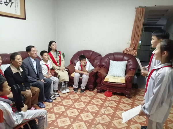 为了弘扬中华民族“敬老爱老”的优良传统文化,在重阳节来临之际,10月22日下午,忠义社区关工委联合实验小学组织“关爱三牵手结对帮扶”的青少年上门看望拜访牵手的爷爷、奶奶,向多年牵手的老爷爷、奶奶们祝贺节日快乐,献上自己亲手制作的贺卡,为他们表演节目。通过活动社区、学校、社会、家庭中开展形式多样的社会实践活动,引导青少年在家做个好孩子,从小学会感恩;在校做个好学生,团结师长;在社会做个好少年遵纪守,遵纪守法;推动了学校教育、家庭教育、社会教育的有机结合。