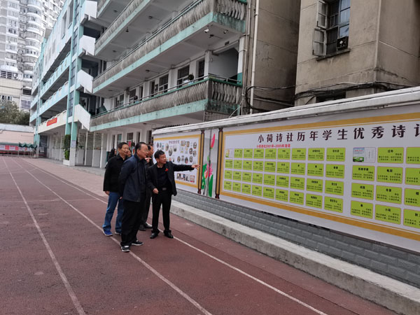 座谈会后,调研组到北门小学,调研该校诗教情况,大家对该校诗教工作历史、做法、经验有了进一步了解,充分肯定了北小诗教工作成绩和老同志的贡献。