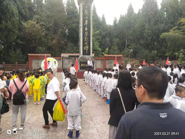3月31日上午,安砂镇关工委联合安砂中心小学、中心幼儿园、市十一中分批组织师生到安砂革命烈士陵园向在为民族独立、国家解放和社会主义建设事业中牺牲65名安砂藉革命先烈们致以崇高敬意和沉痛哀悼。活动由学生代表主持,镇关工委成员张瑞松老师宣讲革命烈士英雄故事。活动要求全体师生要继承先烈遗志,传承红色基因,发扬革命传统,要以革命先烈为榜样,学习他们坚忍不拔、英勇不屈的革命精神,学习他们前赴后继、舍生取义的进取精神,学习他们不求索取、一心为民的奉献精神,学习他们吃苦在前、享受在后的崇高风范。对先烈的思念和敬意化作力量和决心,将自己的热情和朝气,智慧和汗水,积极投入到刻苦学习中去,共创明天美好未来的红色后代,争做中华新时代的革命接班人。