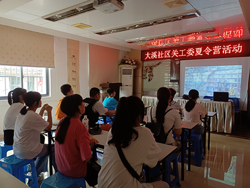 8月8日,大溪社区关工委组织辖区青少年开展暑期夏令营活动。本期夏令营活动内容以“不忘初心,牢记使命”,“传承红色基因,争做时代新人”为主题,安排了诗歌鉴赏朗诵、垃圾分类情景剧、学习时代楷模黄文秀、普法知识讲座、禁毒知识宣传等活动。为适应学生不同的年龄段,夏令营活动形式有讲座、观影、互动答题、趣味游戏等,受到了孩子们的热烈欢迎。