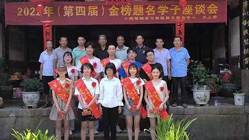 8月15日上午,小陶镇麟厚万寿延养老服务中心、片区片工委召开2022年(第四届)金榜题名学子座谈会,为2022年6名高考500分以上和4名考取硕士研究生学子颁发奖学金。小陶镇副镇长陈雅、镇文化服务中心干部、镇关工委“五老”同志,麟厚片区所在地村两委、关工委“五老”同志,家长代表40余人参加了座谈会。与会人员向金榜题名学子表示热烈祝贺,勉励他们要以理想为导航、以奋斗为动力,努力学习,立志成才,要知道感恩,感恩父母的无私培育和社会大家庭的关怀。学子们纷纷表示要珍惜宝贵的学习时光,不忘父老乡亲的关爱、家庭的厚望,树立远大的理想,在学习中刻苦钻研、汲取真知,不断磨砺自己、充实自己、提高自己,以优异的成绩,感恩父母,回报社会,报效祖国。