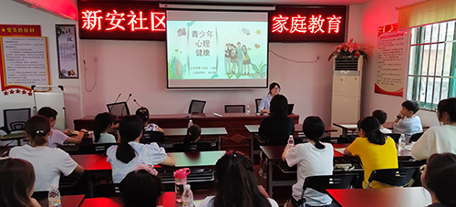活动三:开展《青少年心理健康》专题讲座。邀请永安市第六医院心理科心理治疗师郑云娜到场为青少年及家长们授课。郑老师通过PPT展示、案例分析等方式系统讲解心理健康的标准及评估,认识抑郁症、焦虑症的表现及危害,教导家长如何识别孩子的心理危机信号,当发现孩子出现心理危机的信号,家长应如何处理孩子的心理危机及建立孩子的心理素质。