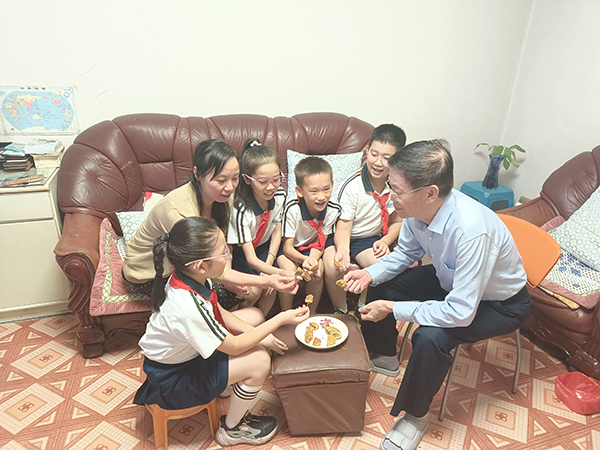 在中秋节来临之际,9月8日忠义社区关工委开展老少牵手“话中秋”活动。“三牵手”小朋友来到老年志愿者邱浴林家,听邱老给小朋友讲述中秋的来历;小朋友为邱老朗读诗歌“水调歌头.明月几时有”;老少共赏月饼。邱老鼓励小朋友在新时代奋发学习成为祖国的栋梁,以饱满的精神迎接二十大,小朋友祝福邱老身体健康、中秋快乐。