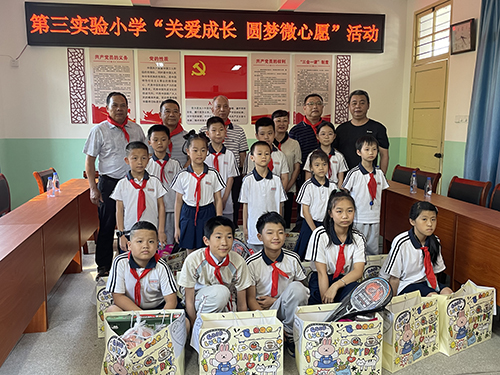 在“六一”儿童节来临之际,5月30日,市关工委联合教育局关工委到第三实验小学开展“关爱成长、圆梦微心愿”活动,慰问“两童”,给14名孩子发放节日的礼物。活动中,市关工委常务副主任杨品生代表市关工委给全体小朋友、少先队员致以节日的诚挚问候,鼓励孩子们要从小勤奋学习,勤于思考,养成良好的行为习惯,在德智体美劳等方面全面发展,以积极进取的精神状态迎接未来的挑战。