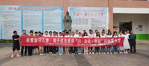 7月17日,由福建师范大学教育学院“魔创未来”永安分队主办,小陶镇团委、镇关工委、永安二中承办的关爱留守儿童,提升信息素养——“3D·文化·创新”科创夏令营在永安二中阶梯教室举行开营仪式。出席开营仪式的有小陶镇党委组织委员、关工委主任陈浙勇,镇、校关工委“五老”同志,永安二中副校长、政教处主任、有关老师,留守儿童及夏令营营员40余人参加。开营仪式由永安二中副校长陈汝吉主持。陈浙勇热烈祝贺夏令营成功举办,勉励营员珍惜宝贵学习时间,刻苦学习、努力实践、开拓视野、不断探索,结合小陶地方特色传统文化,努力培养科学素养,感受科技魅力。