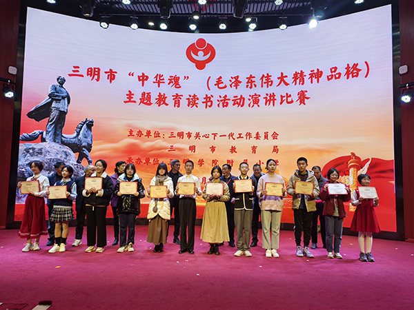 12月23日,三明市关工委与市教育局联合举办“中华魂”(毛泽东伟大精神品格)主题教育读书演讲比赛。来自11个县(市、区)中小学及市直单位、院校的53名选手参加演讲比赛。三明市关工委领导班子出席活动,林纪承主任到场致辞。