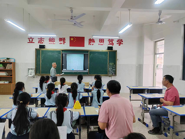 课堂上,游诗铭校长首先说明“非遗文化”进校园的意义;接着刘爷爷给同学们介绍了《龙船歌》,他说《龙船歌》有着悠久历史,是在民间祖祖辈辈口头流传下来的一首民歌,内容大体可分为造船敬神类、思圣赞英类、抒景赞志类等;听着刘爷爷的讲解,同学们早跃跃欲试了。学唱环节,刘爷爷一句一句地用永安方言带领同学们唱,时不时纠正孩子们的发音,整个教室洋溢着清脆的童声和浓厚的氛围。