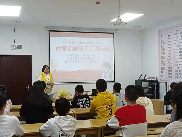 金秋十月,恰逢国庆,10月6日,在这个举国同庆的日子里,在永安团市委、永安市关工委指导下,永安市燕城青少年社工中心开展了“两童”迎国庆的手工画活动。