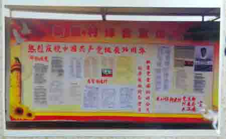 ▲6月29日安砂镇新建村退休老教师、老党员陈义潘同志和该村关工委常务副主任邱恒模同志一道,在村部宣传栏以党支部、村委会、关工委名义出版了一期墙报,就庆祝中国共产党诞辰96周年和向廖俊波同志学习,做.爱党、爱国的公民及新建村点赞等内容进行宣传。