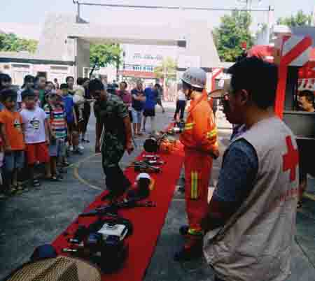 活动采取寓教于乐的形式,首先在消防大队参观消防装备和营区内务、观看消防战术表演、学习消防安全知识和灭火器使用。接着在公安局会议室观看建军90周年电教片、学习心肺复苏、应急压迫止血等应急救援知识。