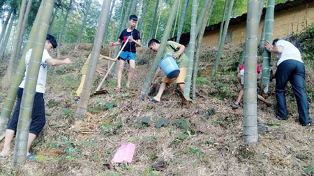 7月30日,上坪乡龙共村关工委主任和常务副主任带领放暑假在家的20多位学生到福建省现代竹子科技园区现场操作毛竹山高效经营示范程序。用通俗简便语言进行讲解,并现场示范给小朋友看,然后小朋友自己操作,对有不对之处进行更正,经过一天的努力,使学生们懂得如何经营好毛竹山,如何培育高产高效毛竹山和增加收入的原因。小朋友干得热火朝天。