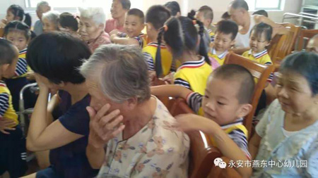 小朋友们为爷爷奶奶送上精心准备的月饼、蛋糕、饼干等,并为爷爷奶奶带来了丰富多彩的节目。今天的老人院生机勃勃,其乐融融,台上一张张真挚童真的笑脸,一首首悦耳动听的歌曲,台下爷爷奶奶们奶露出幸福的笑脸。