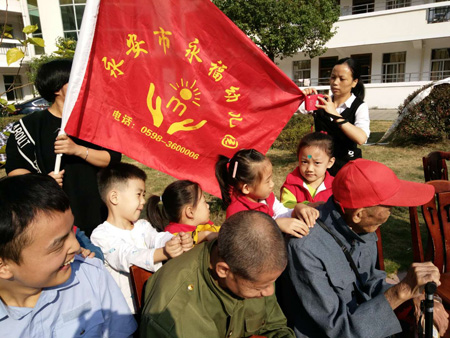 农历九月初九是我国的重阳节,重阳节又叫“老人节”,尊老、敬老、爱老是中华民族的传统美德,东门社区关工委携手永福幼儿园开展重阳节 “尊老、敬老、爱老”为目的主题活动。孩子们是祖国的未来,为了更好地从小培养他们尊老、敬老、爱老的优良品德,东门社区关工委携手永福幼儿园于10月27日上午,组织社区志愿者、永福幼儿园老师、大班的孩子们与自己的爷爷、奶奶们一起过节,并小手牵大手带上自己的爸爸妈妈走进福利院,为孤老病残的爷爷奶奶送爱心、送祝福,用自己的方式表达对爷爷、奶奶等老人的关心和爱护。