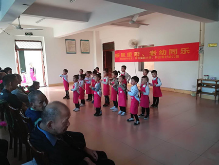 下午,林业新村社区关工委联合第三实验小学、林业新村幼儿园一起到永安市福利院、国德老年公寓慰问老人。小朋友们为老人们带来了丰富多彩的节目,有舞蹈《感恩的心》、《大眼睛》,重阳节诗词朗诵,歌曲《烛光里的妈妈》、《童趣》等等,老人朋友们看得津津有味,大家都被可爱的孩子们萌到了。