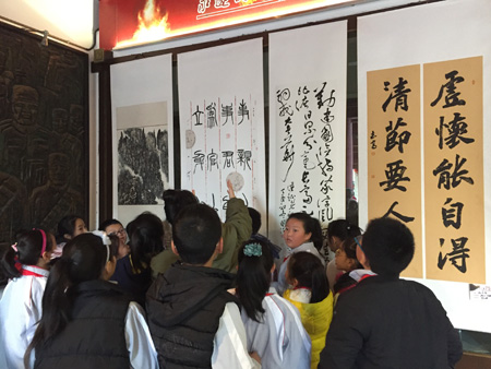 忠义社区关工委组织未成年人参观家风家训书画展