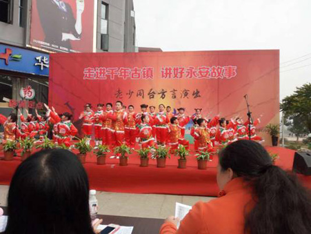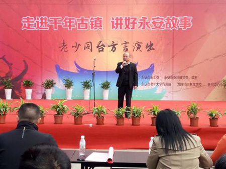 为宣传贯彻党的十九大精神,弘扬中国优秀传统文化,2018年1月3日上午9:30永安市关工委、永安市贡川镇党委、政府、永安市老年大学方言班、永安市龙岭社区老年学校、永安市贡川小学在贡川镇佳洁超市广场联合举办“走进千年古镇•讲好永安故事”老少同台方言演出。永安市委宣传部、永安市文体广电出版局、永安市教育局、各乡镇、街道关工委分别派人观摩演出,现场观众给予热烈的掌声。演出刚结束永安微视台关注人数就达1720多人。