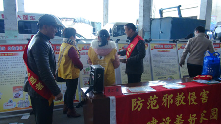 活动中,曹远镇党委副书记、关工委主任姜利林及相关工作人员向广大村民群众发放反邪教宣传单,向他们介绍“什么是邪教”、“邪教对社会的危害性”、“邪教的骗人手段主要有哪些”等相关内容,深入浅出地阐述了邪教的本质及严重危害性。
