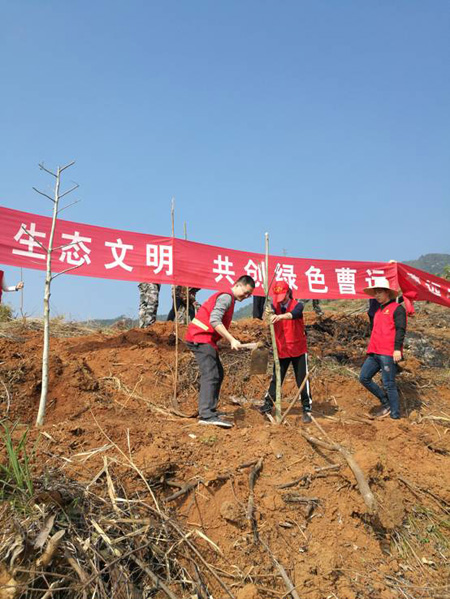 3月28日上午,曹远关工委、文明办组织30多名志愿者到该镇东风村的后山开展植树造林保护生态活动。共种200多株枫香树苗,特别是青少年志愿者,从植树造林中体会到爱家乡、爱劳动、爱护花草树木的同时,表示要和小树一起健康快乐成长,要学习小树在成长过程中经得起风吹雨淋日晒的坚毅刚强精神,用于学习和工作当中去。