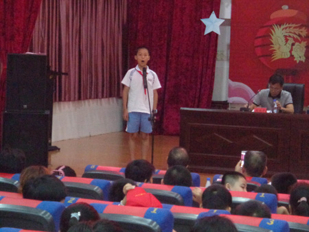 7月6日上午,永安市第十七届老少牵手夏令营举行“腾飞的祖国”优秀征文演讲。8名获奖征文营员登台演讲,他们声情并茂的演讲获得阵阵掌声。