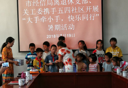 7月19日,经信局离退休支部、关工委组织开展“大手牵小手,快乐同行”暑期活动。给到会的党员和学生发放学习资料和课外读物,同时走进军营学习参观。