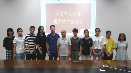 8月17日,永安市关工委召开扶贫助学座谈会。市关工委主任郑纪成、常务副主任江志诚、刘韵灏,福建和其昌竹业集团公司董事长、市关工委特邀副主任俞先禄及由福建和其昌竹业集团公司赞助的去、今两年的学生参加。座谈会由江志诚主持。