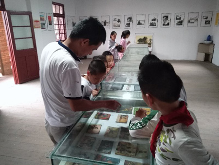 在活动现场,关工委的工作人员组织当地小学生来到汶四村知青楼,观看了知青陈列馆展柜内诸多当时的书籍、物品,展厅内反映知青时期生产生活的照片、画作。汶四村党支部书记、关工委主任杨思桂给孩子们专门讲述了诸多到汶四村下乡知青的故事及取得的成绩,让学生们感受知青历史,了解当年知青们为国家分忧、勇于奉献、执着不悔的精神。
