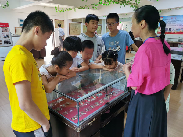 7月12日,忠义社区组织夏令营的营员们观看建党100周年红色文化展,“传承红色基因讲好永安故事”红色文化展览主题活动。