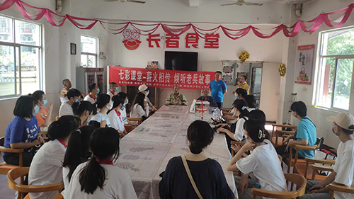 为纪念中国人民解放军建军95周年,8月1日上午,燕城青少年社工中心带领青少年在福利院开展“七彩课堂-薪火相传一一倾听老兵故事"为主题的共度八一节日活动。