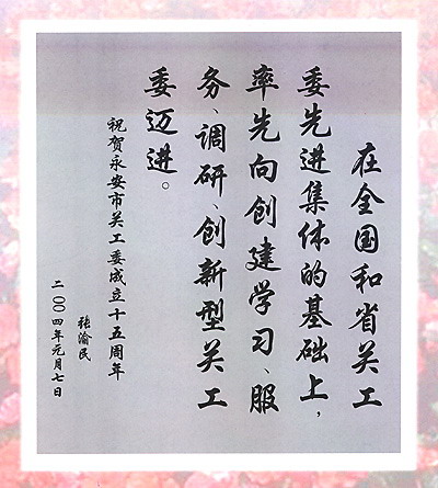 江泽民同志题词