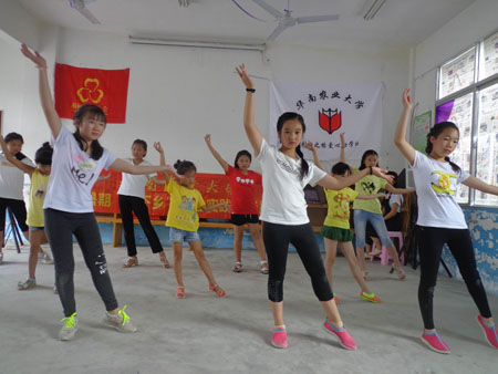 夏令营的开幕式上,大学生们为孩子们带来了精彩的文艺演出,有舞蹈《木棉花》、歌曲《陪你度过漫长的岁月》等。此次活动除了和往年一样发挥大学生们的在文艺、体育等方面的优势协助乡童教育,更结合了“美丽乡村”建设,助力上坪生态旅游和农业的发展。通过开展“环保小卫士”主题支教活动向小朋友和村民宣传环保知识;开展“美丽上坪”征文活动,小朋友们在志愿者的指导下写出对家乡之美的热爱。同时,结合华南农大在农业技术上的专业知识,通过入户指导、讲座、发放宣传手册等方式帮助村民解决农业生产方面遇到的问题。