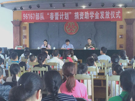 8月31日下午,我市举行驻永某部“春蕾计划”捐资助学金发放仪式,市委常委、组织部部长陈章明,驻永某旅党委常委后勤部长穆忠庆,各乡镇、街道妇联主席,以及受助的全体学生和家长代表等百余人参加了活动。