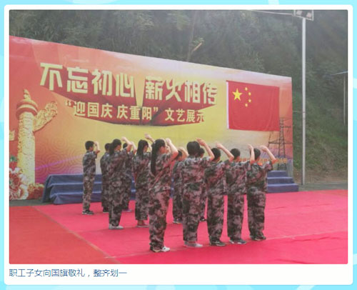 活动有老同志表演的表现老同志不忘初心,欢乐晚年生活的文艺节目;有青年职工表演的“牢记誓言”、职工子女举行的“向国旗敬礼”等表现薪火相传的节目。老青少三代人同乐共庆,热烈祥和。