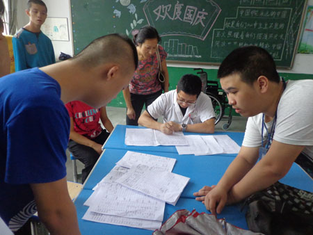 燕城处处桂花飘香,新学年度开始了。10月21日下午,永安市特殊教育学校师生、家长迎来市关工委夕阳红科技服务团的10名老医生。每年新学年开始,老医生们就会来为残疾孩子体检,今年已经是第10年了。各体检处忙而不乱,老同志细心检查,不时与学生和家长交流或交代有关事项。忙完50多名学生体检后,老同志向老师们通报体检结果,交代好注意事项。老医生们关心残疾孩子,使学校师生和家长非常感动,称他们为“我们的亲人”。
