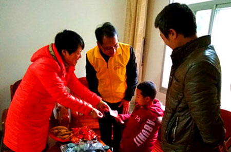 两年来,社区关工委支书洪丽贞以慈母般的情感,温暖了社区孤儿、留守儿童、着贫困儿童的心灵,以甘露般的温馨,滋润了一株株枯萎的“禾苗”,她以无私的爱心,被孩子们称为“爱心妈妈”。近日,洪丽贞一直牵挂着困难流动人员魏玉军的上一年级的儿子魏豪。小魏豪两岁的时候母亲就离家出走,至今未归。父亲魏玉军,左脚残疾,行走不便,自己无收入,仅靠魏豪的爷爷奶奶卖菜维持家庭生计。数九寒天冷刺骨,魏豪家庭困难,被褥单薄,社区“爱心妈妈”老年大学的老年志愿者们就为小魏豪送去保暖的毛毯。日前,洪书记在爱心同盟群里看到群里可以资助困难儿童慰问的信息后,马上与燕城爱心同盟群群主黄筱雄联系,把小魏豪的家庭困难情况告之,很快从燕城青少年事务社会服务中心申请到500元慰问金,在春节前的慰问中,洪丽贞与小魏豪进行了亲切交谈,并仔细询问他的学习和生活情况,以及目前存在的困难和问题,一声声问候,一句句叮嘱,如一股暖流,温暖着孩子的心,让小魏豪一家人都切身感受到党和政府的关怀和社会大家庭的温暖。