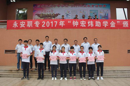 据了解,钟宏炜1985年出生于永安青水乡百芑坵村的一个普通农家,2002年在永安职专老师的关心指导下考入福建农林大学动物科学学院畜牧兽医专业,经过多年的拼搏,取得了可喜的成绩,为报答母校,资助学弟学妹,从今年1月开始设立“钟宏炜助学金”,每年资助8名品学兼优的学生,每生每月300元。