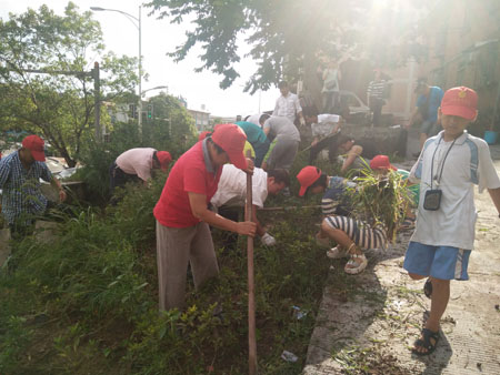 在劳动现场,孩子们不畏烈日高温,积极投入劳动,有的用手直接拔草,有的往外清理垃圾……大家发扬不怕脏、不怕苦、不怕累的精神,干得热火朝天。经过一下午的奋战,志愿者们汗流浃背,换来小区环境焕然一新:解放路930号后面草坪中的杂草、垃圾没了踪影,植树节种下的映山红露出了倩影。