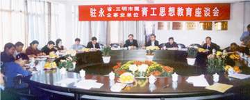 为了总结交流青工思想教育的成绩和经验,从1999年起,市总工会和市关工委联合,先后在福建化纤厂、永安火电厂、机械厂.、化工厂等单位联合召开青工思想教育座谈会,互相学习,彼此促进,使厂矿企业青工教育与时俱进,取得新成果。